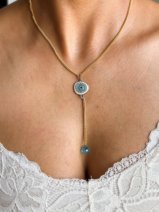 Evil Eye and Druzy Necklace with Toggle Clasp